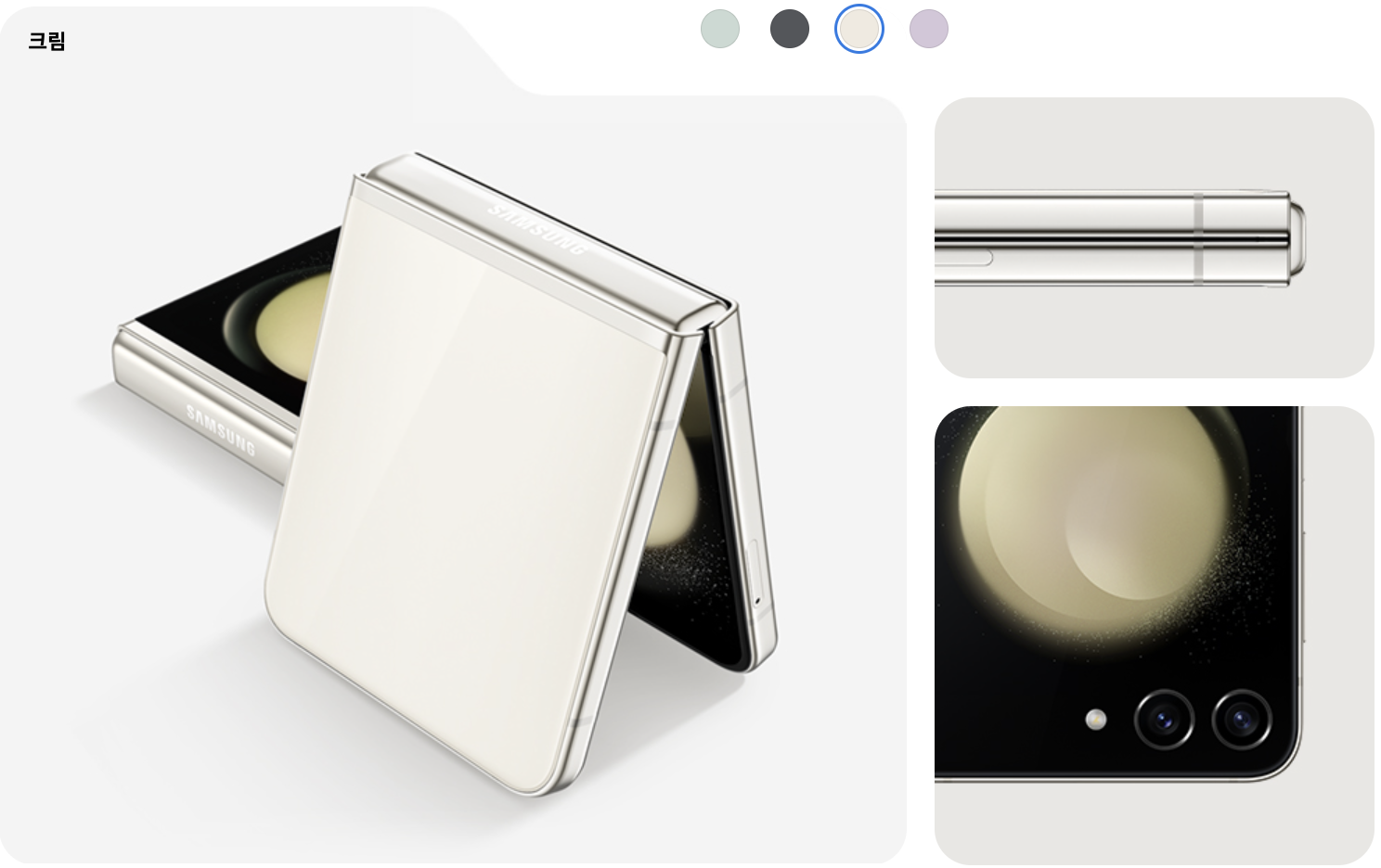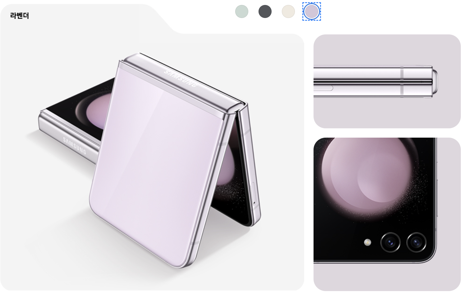 갤럭시 Z플립5 컬러는 민트, 그라파이트, 라벤더, 크림 등 4가지로 출시되었습니다. 그 외, 그레이, 블루, 그린, 옐로우 등 4가지 컬러는 삼성닷컴과 삼성 강남 전용컬러로 삼성 강남 매장에서만 픽업이 가능합니다.
